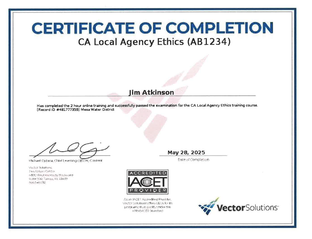 Home Leadership Board of Directors Ethics Certificates ETHICS CERTIFICATES Jim Atkinson - Director View Certificate Fred Bockmiller - Director View Certificate Marice DePasquale - Director View Certificate Shawn Dewane - Director View Certificate James R. Fisler - Director View Certificate Board of Directors Board of Directors Committee Assignments Election Information Ethics Certificates Policy Positions Board Meetings Public Notices Transparency